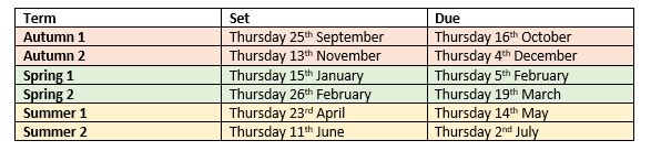 Home learning 6th November (due 12th November)